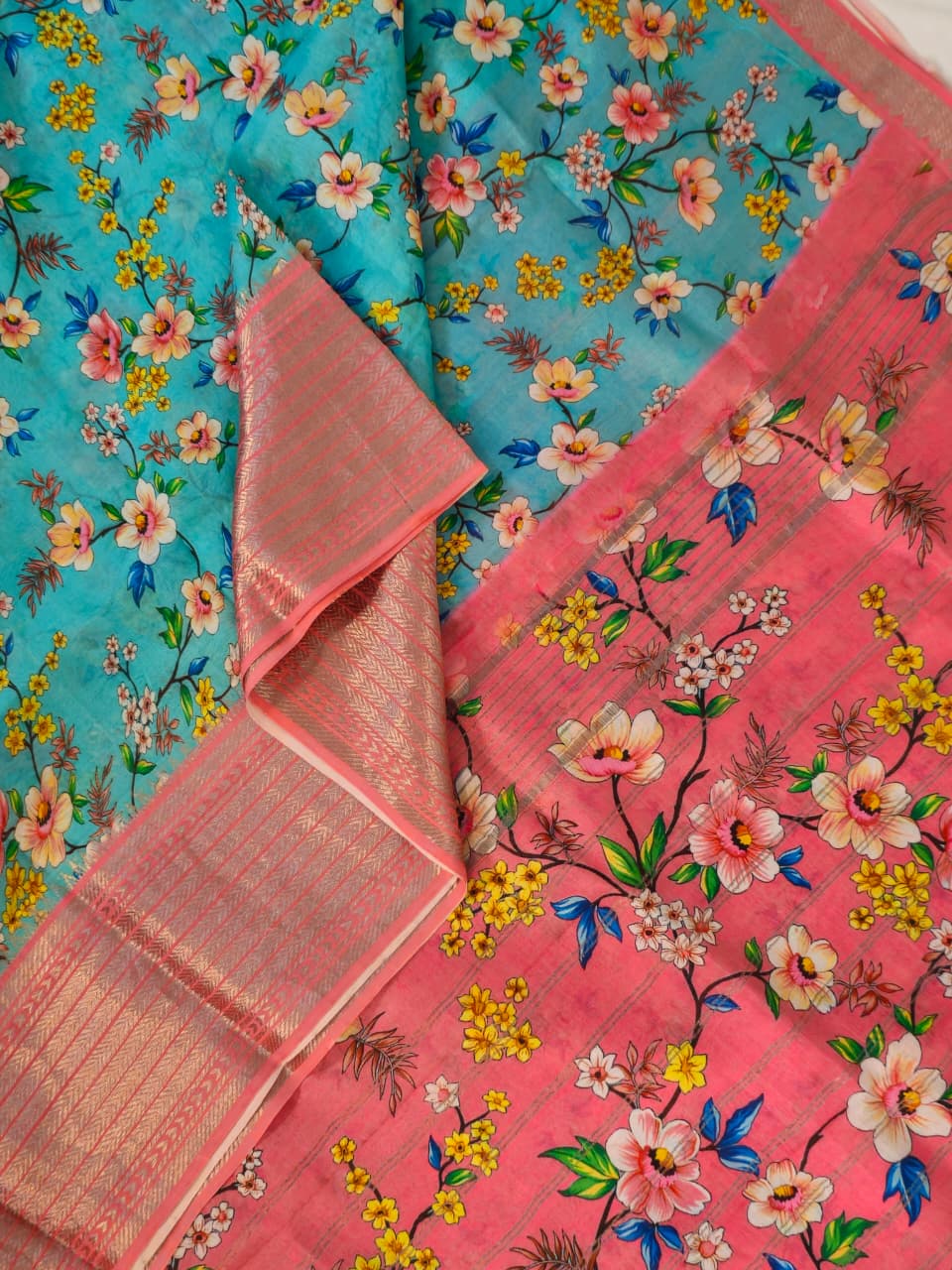 Nīlāmbara – Sky Blue Handloom Mangalagiri Silk Cotton Saree with Digital Print